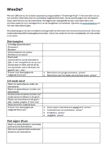 Nabestaanden kunnen zelf informatie voor de website Wiesda aanleveren.