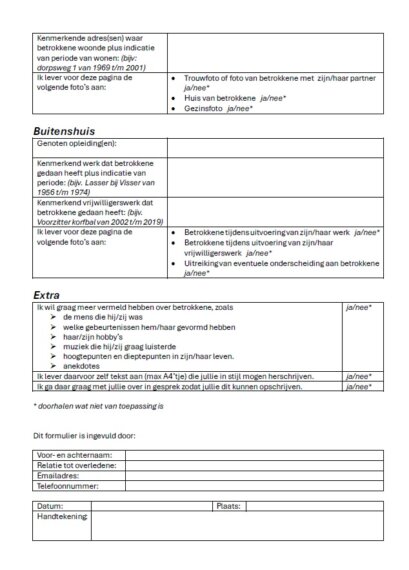 Het is niet verplicht het formulier volledig in te vullen. Nabestaanden bepalen zelf welke informatie zij wel en niet verstrekken.