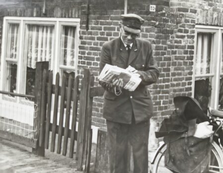 Sijb aan het werk als postbesteller.